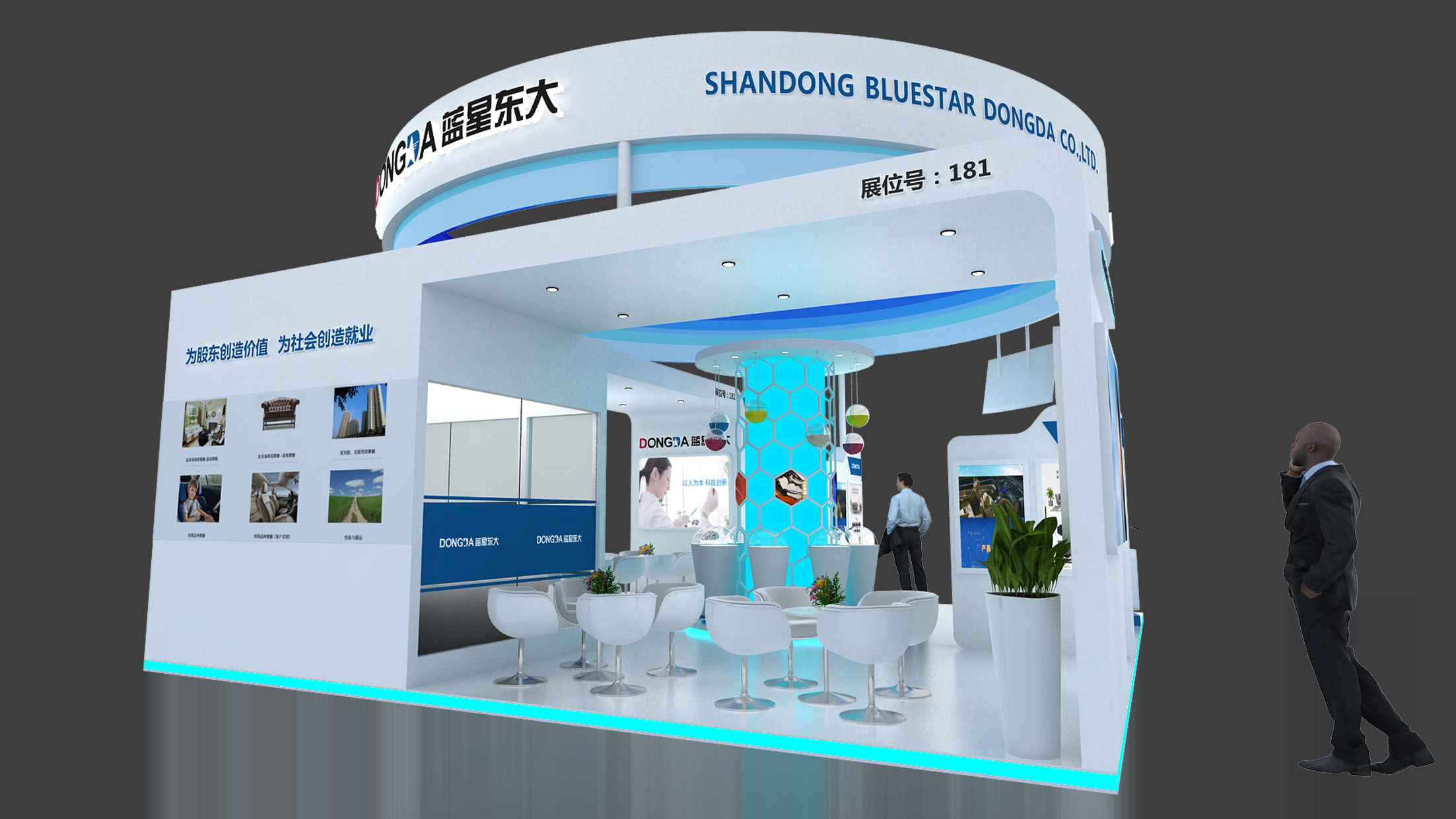 山東藍(lán)星東大有限公司是國(guó)家大型企業(yè),隸屬于中國(guó)化工集團(tuán)下屬的中國(guó)藍(lán)星(集團(tuán))股份有限公司,山東省高新技術(shù)企業(yè),國(guó)家火炬計(jì)劃重點(diǎn)高新技術(shù)企業(yè)。主要產(chǎn)品及規(guī)模為9萬(wàn)噸環(huán)氧丙烷、25萬(wàn)噸聚醚多元醇,聚醚多元醇是中國(guó)石化行業(yè)知名品牌、山東省名牌產(chǎn)品。公司秉承發(fā)展“綠色化工”的理念,已成為我國(guó)重要的化工新材料生產(chǎn)基地。同時(shí)公司堅(jiān)持走出去戰(zhàn)略,積極參與國(guó)際競(jìng)爭(zhēng),努力開(kāi)拓國(guó)際市場(chǎng),與世界上30多個(gè)國(guó)家和地區(qū)開(kāi)展了貿(mào)易往來(lái),逐步成為一個(gè)充滿生機(jī)和活力的現(xiàn)代大型化工企業(yè)。藍(lán)星東大在中國(guó)國(guó)際化工展覽會(huì)設(shè)計(jì)展臺(tái)搭建上表現(xiàn)搶眼,中勵(lì)展覽能夠?yàn)榭蛻敉昝澜桓陡黝愓古_(tái)設(shè)計(jì)搭建。