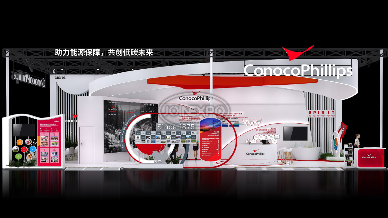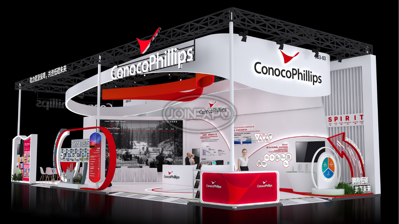 自20世紀(jì)80年代以來,康菲一直是中國忠誠的合作伙伴,也是中國上游油氣行業(yè)最大的外商投資者之一。在過去近40年中,康菲將在中國的業(yè)務(wù)范圍擴(kuò)大到了各個領(lǐng)域,包括石油、天然氣勘探和生產(chǎn)、液化天然氣供應(yīng)和其他相關(guān)業(yè)務(wù)。目前,康菲在北京和天津(塘沽)兩地設(shè)有辦公室。康菲承諾以負(fù)責(zé)任的態(tài)度參與能源開發(fā)及生產(chǎn),關(guān)注作業(yè)所在地區(qū)的長遠(yuǎn)發(fā)展,為利益相關(guān)方創(chuàng)造長期價值??捣浦铝τ诼男衅髽I(yè)社會責(zé)任,以當(dāng)下亟需解決的民生問題為本,通過長遠(yuǎn)并創(chuàng)新的戰(zhàn)略規(guī)劃,希望長期改善當(dāng)?shù)鼐用竦纳?。中勵展覽為康菲石油設(shè)計搭建的展臺用流暢的線條和簡潔的色彩搭配,構(gòu)筑出讓人賞心悅目的參觀展臺。