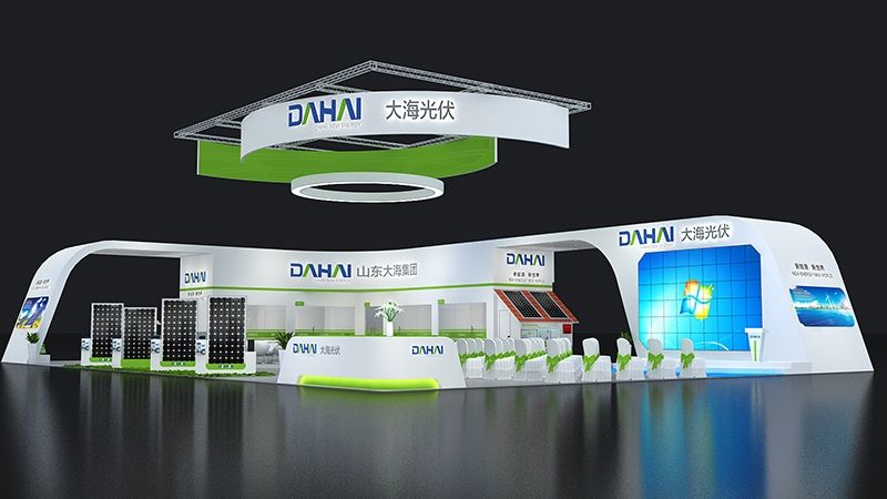 上圖:大海光伏展臺(tái)設(shè)計(jì)中綠色代表行業(yè)的環(huán)保節(jié)能屬性,符合大眾心理認(rèn)知色彩